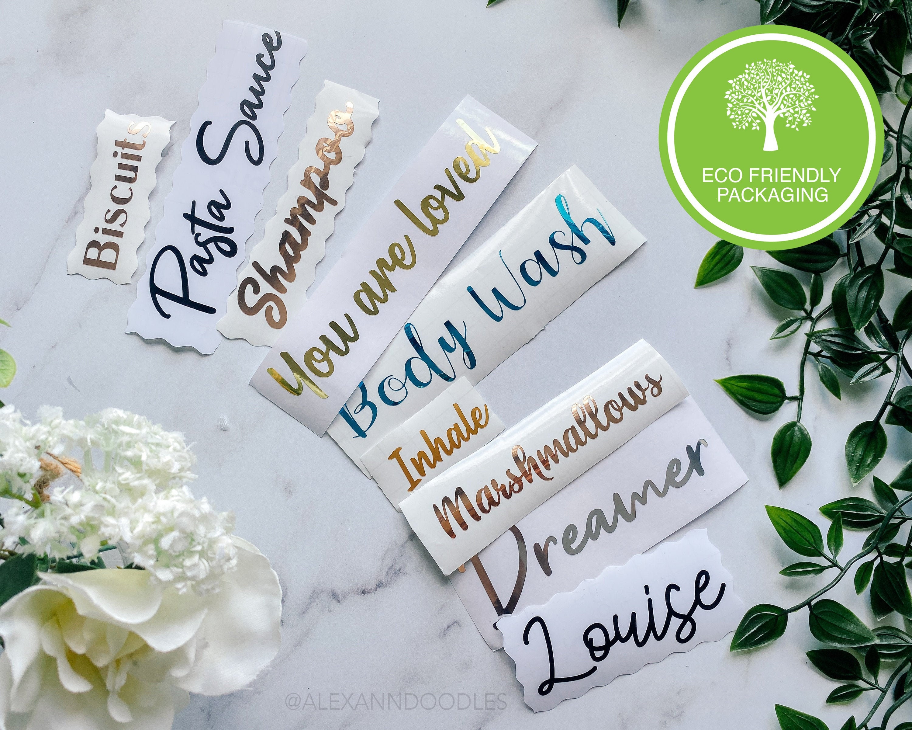 Product labels- Mrs Hinch style - Desired Vinyls Product labels- Mrs Hinch style Stock Code: 100512-202001052306 £0.60 Custom Wording Font Choice (please look at font page and add qualifying font number here, or upload image as checkout) Size Selectapprox 10cm x 3cm for bottlesIkea box decal e.g. Sally`s Hinch Box (will be over two lines) or Kitchen 12x4cmSet of three- 2 bottles and 1 box
