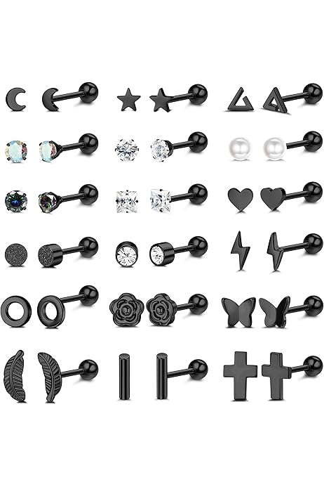PiercingJ 12 Pairs Earrings for Men Silver Black Stud Earrings Mens Earrings Stainless Steel Huggie Hoop Stud Earrings Set for Men Women Jewelry ...
